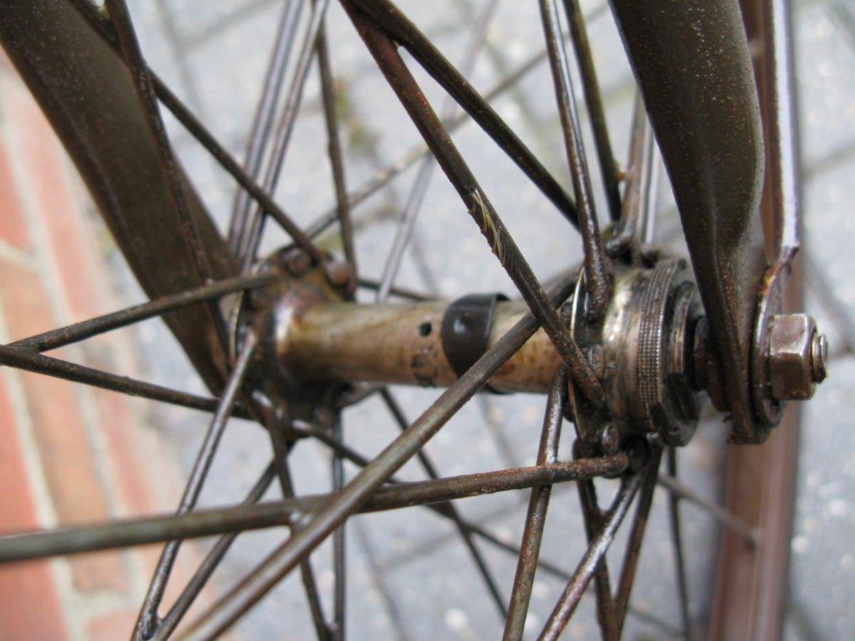 When restored, the original tube type 28 inch (rear) and 30 inch (front) tyres were replaced by a solid tyre, fixed to the original rim.
